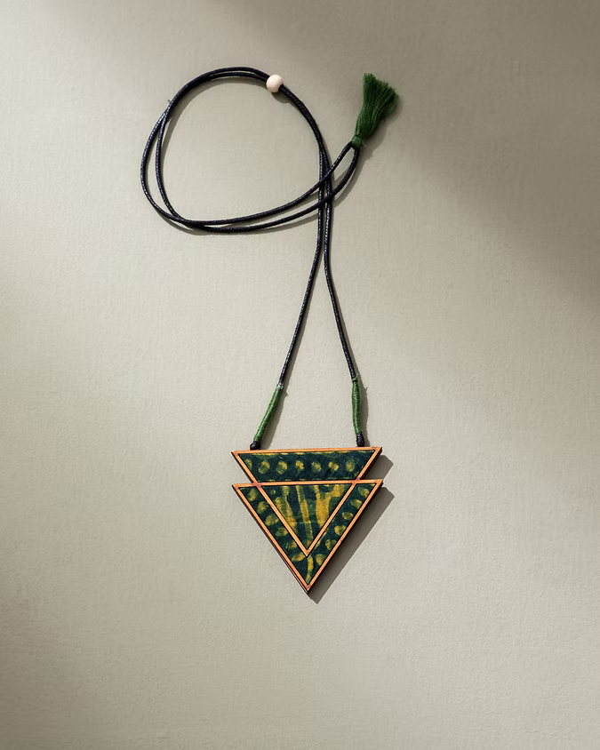 Green Batik Triangular Adjustable Pendant